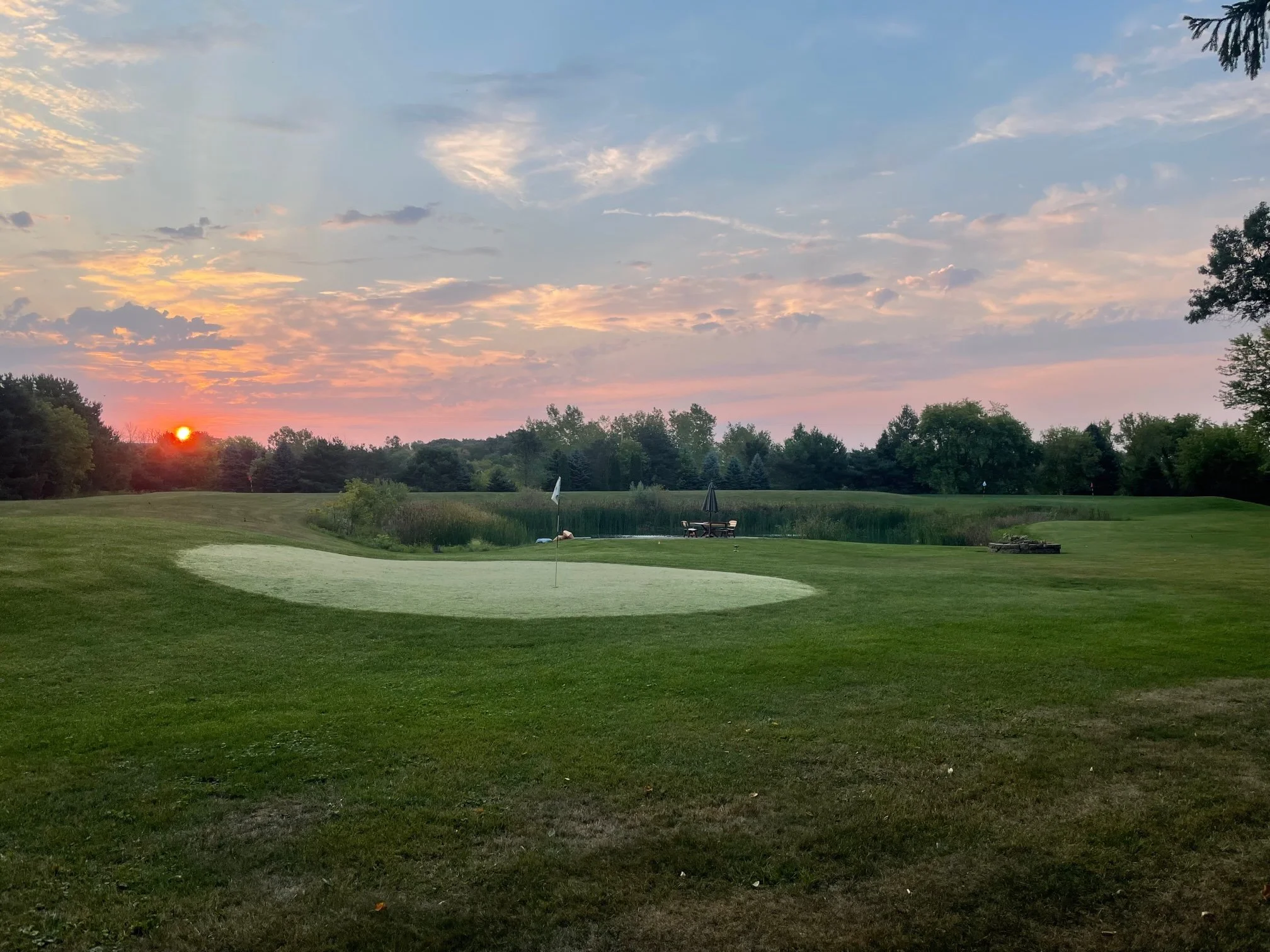I’m blessed to live here and have the support of my amazing wife for The Pond, and I’m grateful for her diligence as the most important member of the grounds crew! She spends hours each week mowing everything except for the bentgrass green on her Ferris 44-inch deck riding mower. She also created The Pond logo based on an idea I had for a fishing pole flagstick, along with our scorecard. Together we enjoy our little nature sanctuary, the wildlife, family and friends’ gatherings, sunrises, bonfires, fishing, and golf.
